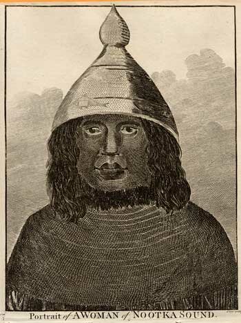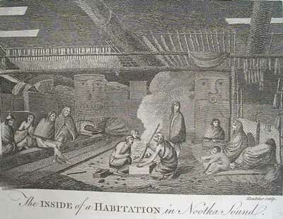 Upon seeing Cook's ship, the Nootka Chief Maquinna told his people "to go out and try to understand what these people wanted and what they are after." On that day Cook wrote in his log: "A great many canoes filled with the Natives were about the ships all day, and a trade commenced betwixt us and them, which was carried on with the Strictest honisty on boath sides. Their articles were the Skins of various animals, such as Bears, Wolfs, Foxes, Dear, Rackoons, Polecats, Martins and in particular the Sea Beaver, the same as is found on the coast of Kamtchatka." Captain Cook went on to the South Pacific, where he was killed when his presence roiled up the natives in Hawaii. The images of Vancouver Island's aboriginal inhabitants were published in the 1780s. They are featured below. |