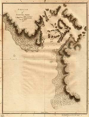 On March 30, 1778, Captain James Cook below sailed his ship Resolution, for the first time, into Nootka Sound, on the south western coast of Vancouver Island. Aboard was John Webber who drew Cook's maps and sketches of the topography, and of the inhabitants whom they encountered. Right is the ultra rare, original engraving that was struck from the copperplate and published in London in 1784. Besides being some 220 years old as an engraving, they are also the first portraits ever made of Canada's First People on the West Coast. |