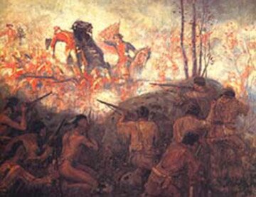 When the Europeans arrived, First Nations were eager to trade furs for metal knives, axe heads, pots, needles, muskets, cloth, and glass beads. The trade goods were quickly dispersed along First Nations' traditional trade routes, and the fur trade expanded rapidly. British Americans and their Indian allies launched attacks into Canada at various times. The French and their Indian allies would retaliate. In effect the traditional wars among the First Nations people were continued on during the 1600s and 1700s but backed up now by powerful European partners who were themselves traditional enemies. But traditional tribal warfare was now using much more sophisticated and destructive weaponry. And what had been war between Iroquois and Hurons was now superceded by war between the English (Americans) and the French. During the War of 1812 Indian allies played important roles in the conflict. Chief Tecumseh and General Brock formed a partnership that helped capture Detroit from the Americans. John Norton and his Iroquois warriors played a key role into striking fear into the American invaders at the Battle of Queenston Heights, on the Niagara Frontier, creating a psychology of panic that demoralized the American army leading to its defeat and retreat. |