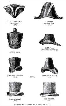 The beaver pelt, so readily available, also became a popular statement among men, as a hat. Throughout the years there would be many modifications of the hat style, such as the Wellington or the Paris Beau.