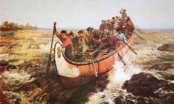![]() Riding a Rapid (Arthur Heming) Frances Anne Hopkins, CW Jefferys, JD Kelly, and Arthur Heming have painted some of the most famous voyageur and fur trade scenics in Canadian history. Countless generations of Canadian school children got their sense of history from seeing their images reproduced in text and picture books. |