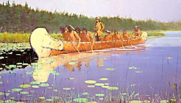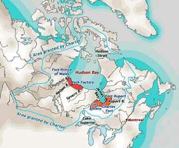 Henry Hudson's expedition had found the northern route into the Canadian interior, by following an arctic passage that allowed the English to avoid the French who were expanding in the south, along the St. Lawrence River valley. In the 1660s, two Frenchmen, Radisson and Groseilliers, explored all the way to Hudson's Bay, and learned that the area was rich with furs. Their tales of the bounty of furs that were to be had made rich businessmen in Montreal, Quebec, and London drool with greed. They managed to raise money to bring a ship load of furs back to England, and convince merchants to invest in the fur trade. As a result, a group of wealthy English merchants formed the Hudson's Bay Company, in 1670, and the King of England granted the Company a fur trade monopoly for all the lands drained by rivers flowing into Hudson's Bay. Even though the land did not belong to him or to his country. The Hudson's Bay Company built trading forts along Hudson's Bay at several river mouths where sailing ships could be anchored. The deep-water ports gave the British traders easy access to the richest fur country of all, and a great advantage over the French: Big ocean-going ships could sail directly between Britain and Hudson's Bay, bringing in trade goods, and carrying out furs. On the other hand, the French fur traders out of Montreal and Quebec, had to paddle long distances along rivers and lakes to reach their forts in the interior. |