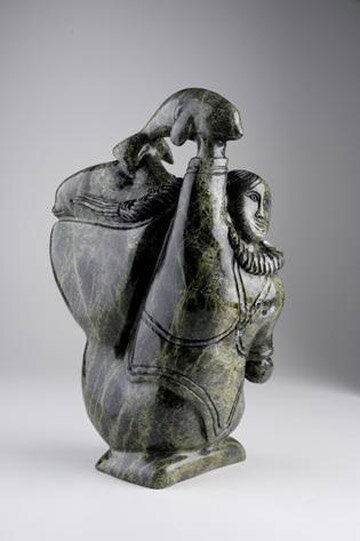Carving of Sedna throwing a beluga whale |