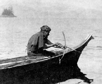 Nuu-chah-nulth man hunts sea otter with bow and arrow |