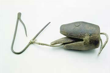| For fishing they used nets, underwater traps, bone and wood hooks, and harpoons. They also used fishlines, which were made out of cedar. |