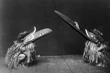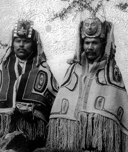 Two Haida Chiefs with Chilkat blankets and headdresses |