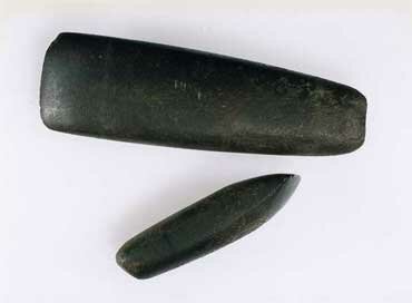 - A stone was found, then chipped into shape using a harder hammerstone, ground and polished using a sandstone slab and then fitted with a handle.
