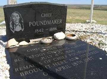 The Roman Catholics, and the Methodists established missions all over the west. For the most part, the missionaries were genuinely concerned about the well-being of the First Nations people. They tried to persuade the First Nations people to become farmers, and also to accept the government's treaties. First Nations who were Christians most readily accepted the treaties George McDougall was an influential missionary. He was a Methodist missionary who had a mission on the upper Bow River, and the Blackfoot especially trusted him McDougall assured Crowfoot that he believed Canada's history with Native people was to treat them justly. Chief Crowfoot was firmly against those of his people who believed that confronting the white man with force was in the best interests of safeguarding Indian rights. Crowfoot believed his people would get a better deal by bargaining honourably with honest white men like Inspector James McLeod. Overlooking the site where he signed treaty is the grave of Chief Crowfoot. |